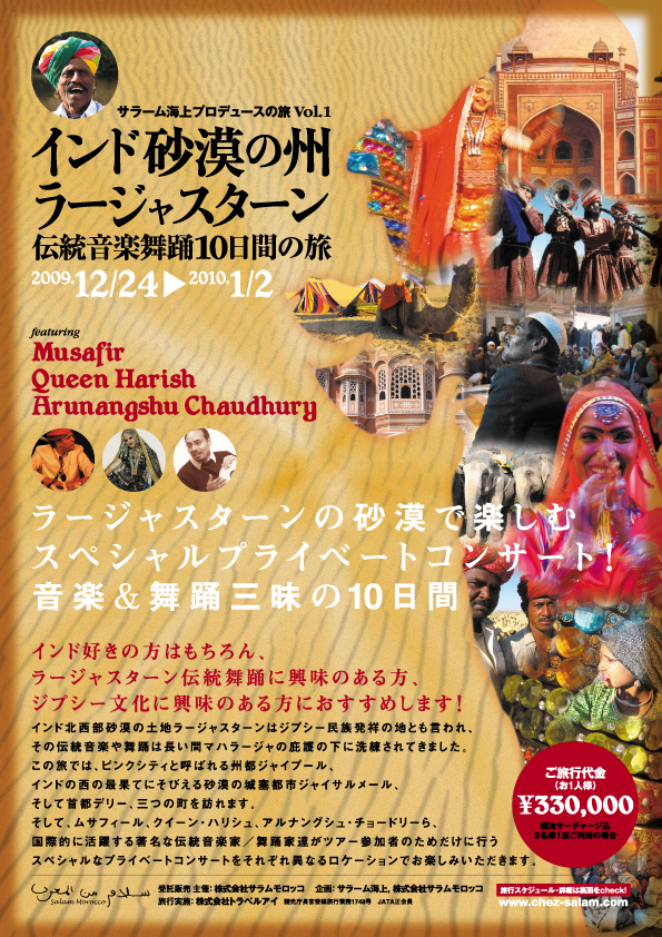 インド砂漠の州 ラージャスターン 伝統音楽舞踊10日間の旅 Posted 2009-10-26 by reinomura インド砂漠の州 ラージャスターン 伝統音楽舞踊10日間の旅 client: Salam Unagami, Salam Morocco 2009