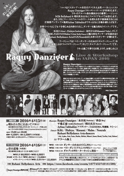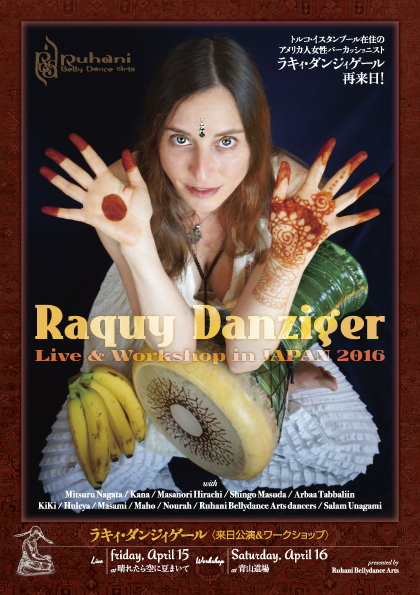 Raquy Danziger Live & Workshop in JAPAN 2016 Posted 2016-02-23 by reinomura Raquy Danziger Live & Workshop in JAPAN 2016 client: Ruhani Bellydance Arts 2016