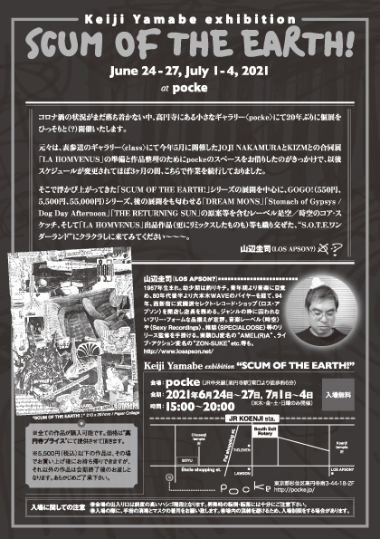 Keiji Yamabe exhibition “SCUM OF THE EARTH!” Posted 2021-06-06 by reinomura Keiji Yamabe exhibition “SCUM OF THE EARTH!” Artwork by Keiji Yamabe (LOS APSON?) client: LOS APSON? 2021